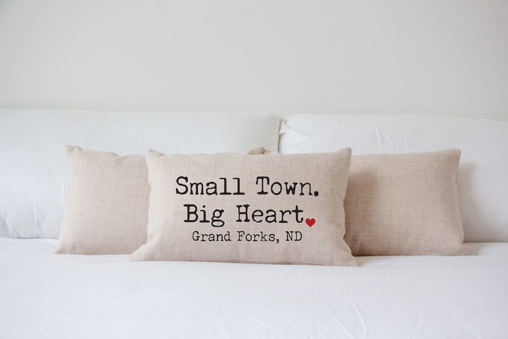 Introducing our 'small town big heart' city pillow, a charming and cozy addition to your home decor!